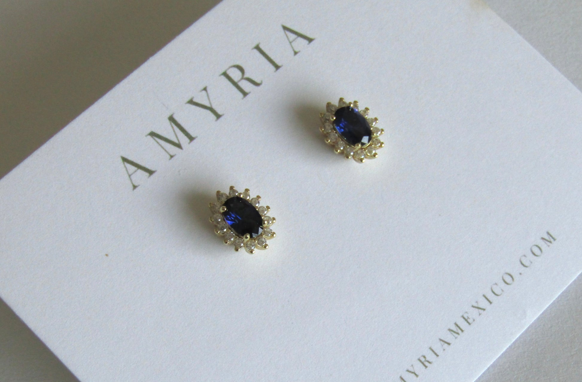 Aretes con zirconia color zafiro en Plata Rose .925, elegancia en cada pieza.